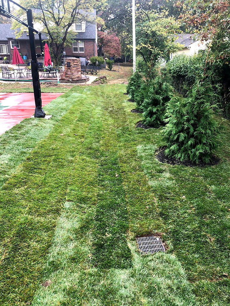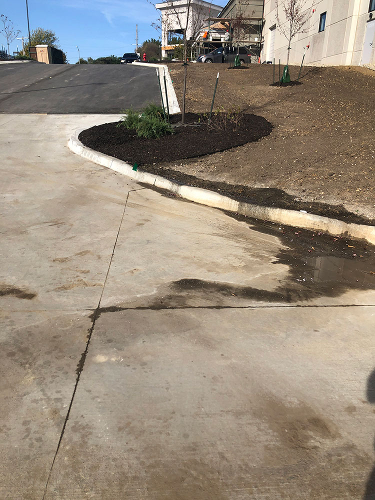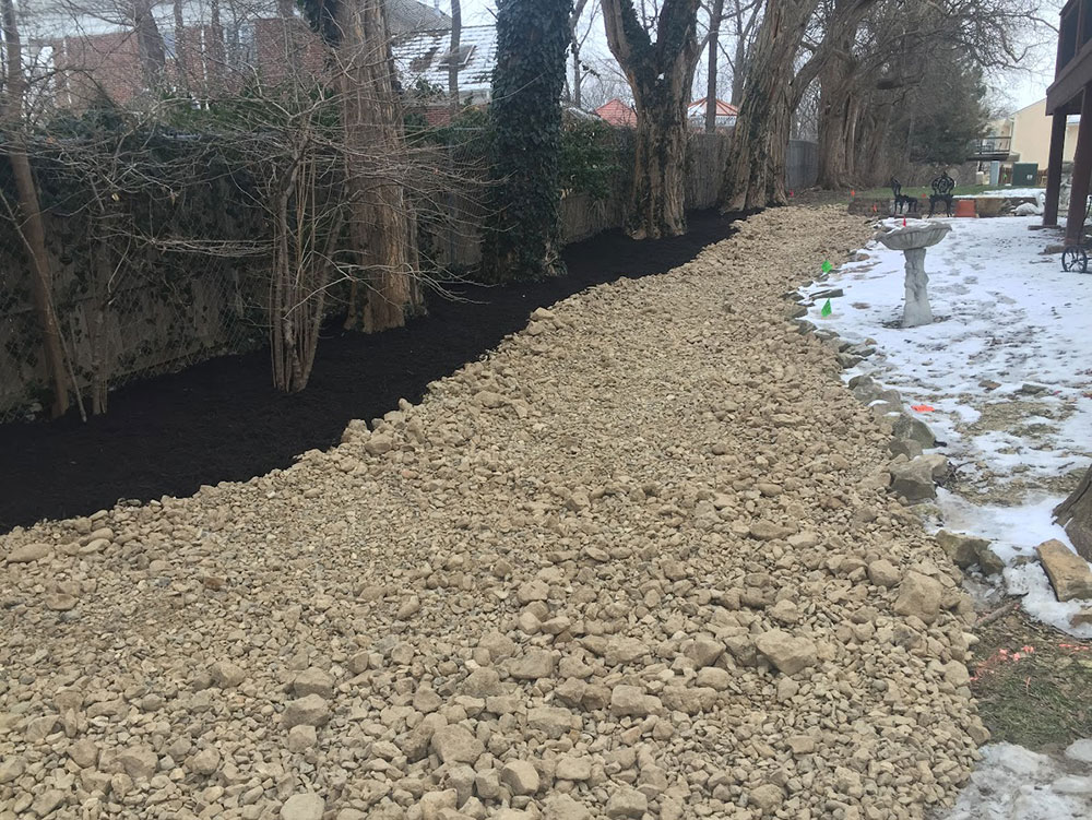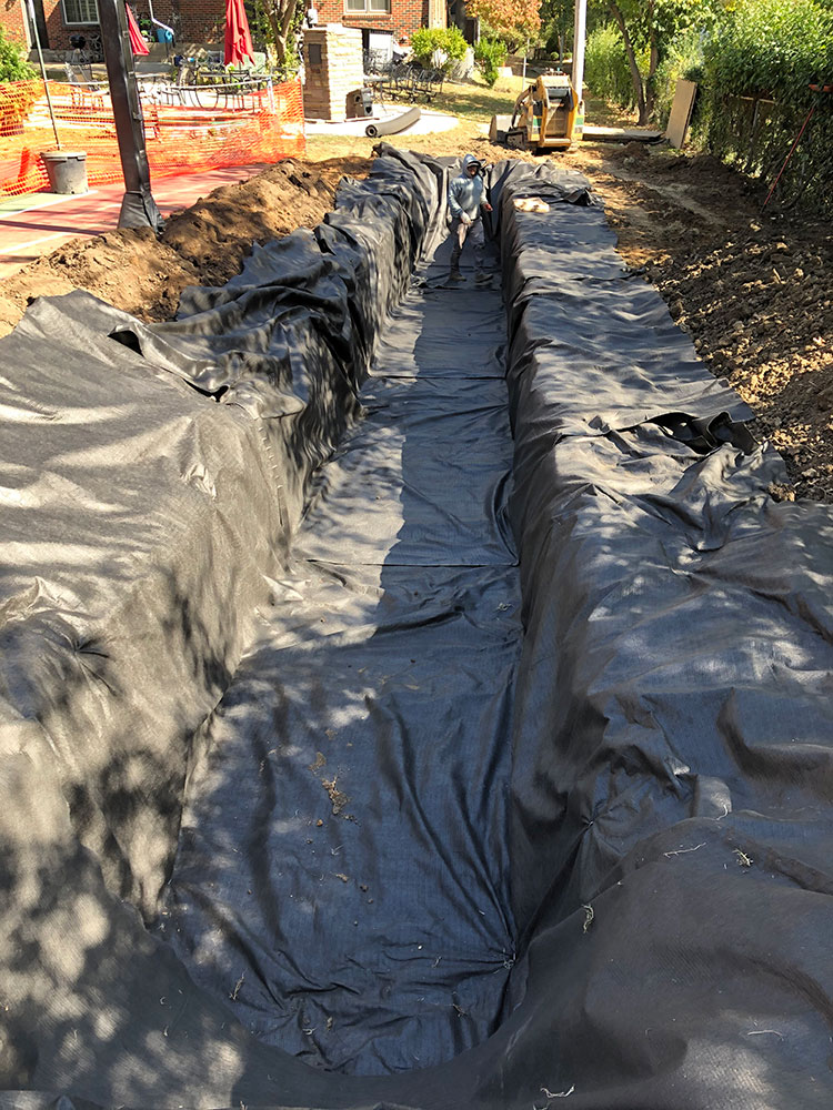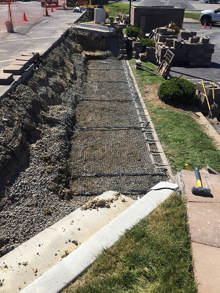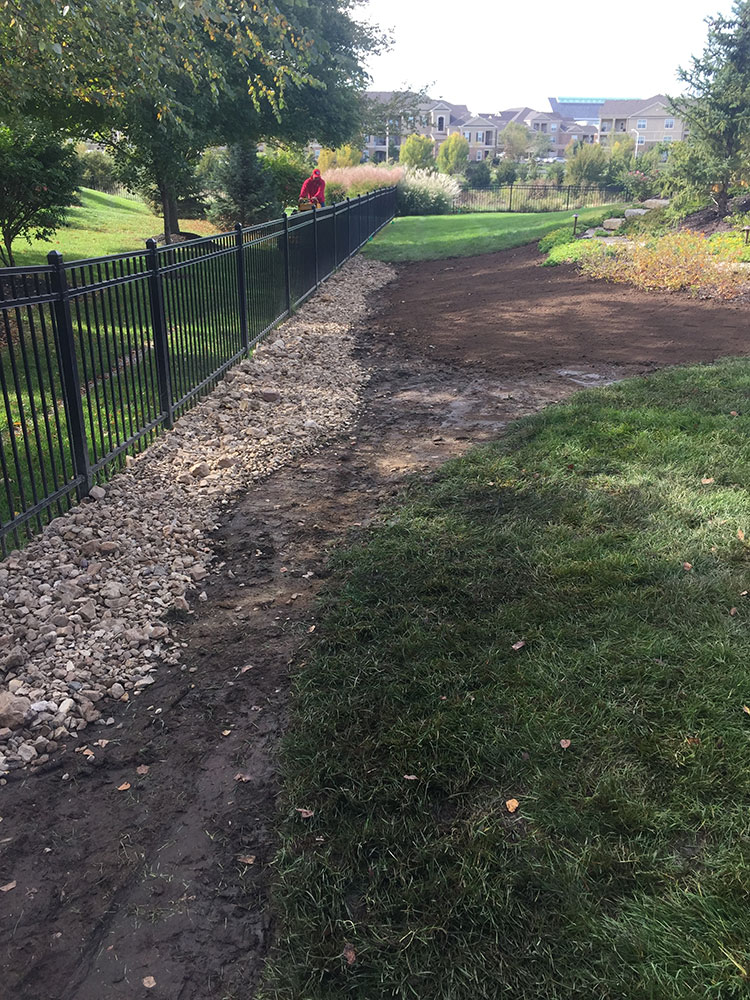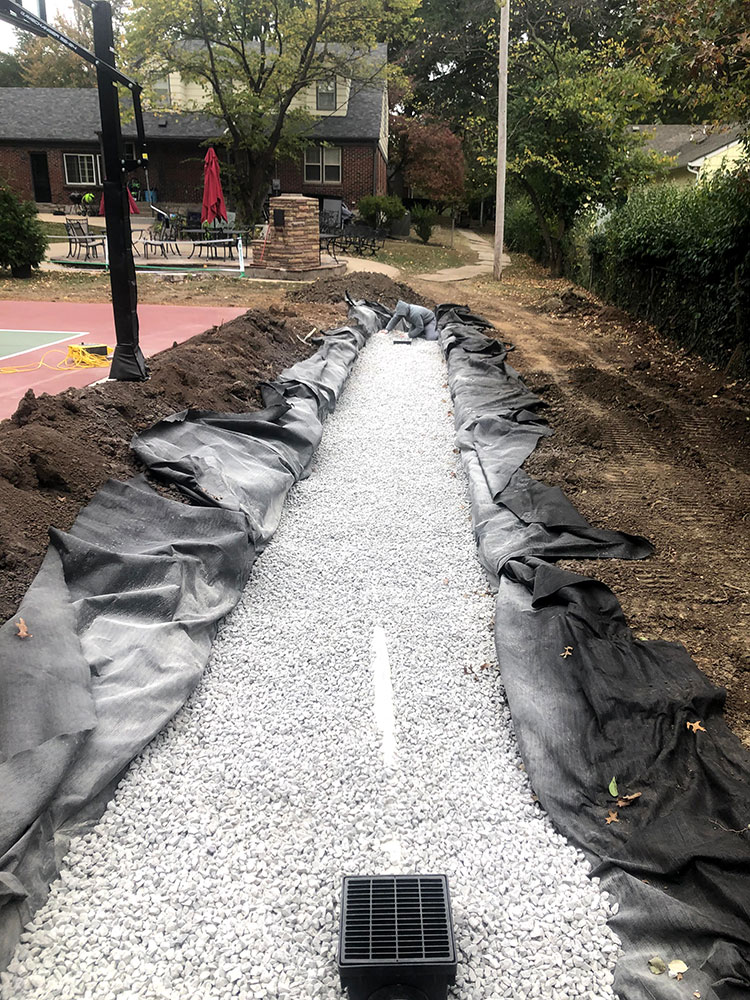 Commercial warehouse swale installed to relieve water pooling in backside of building | Kansas City, KS