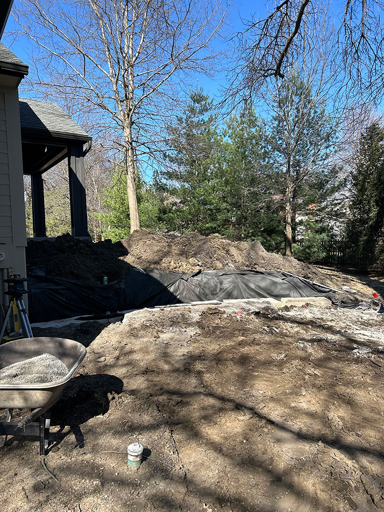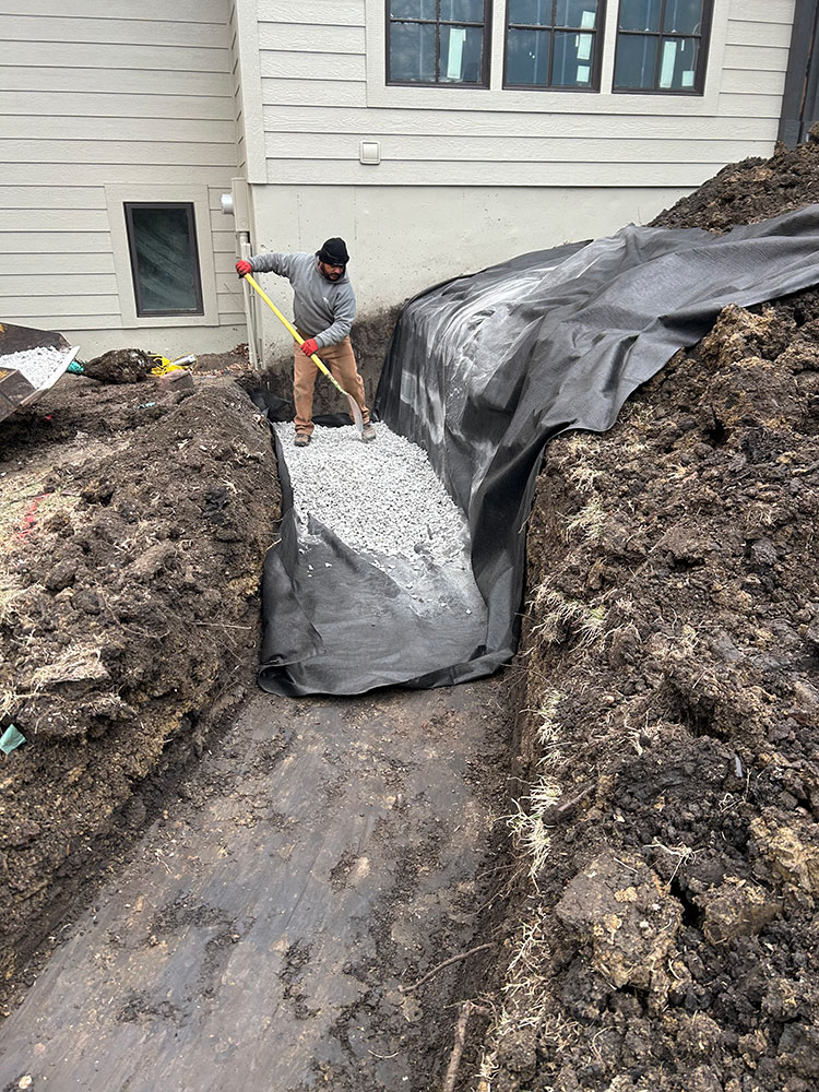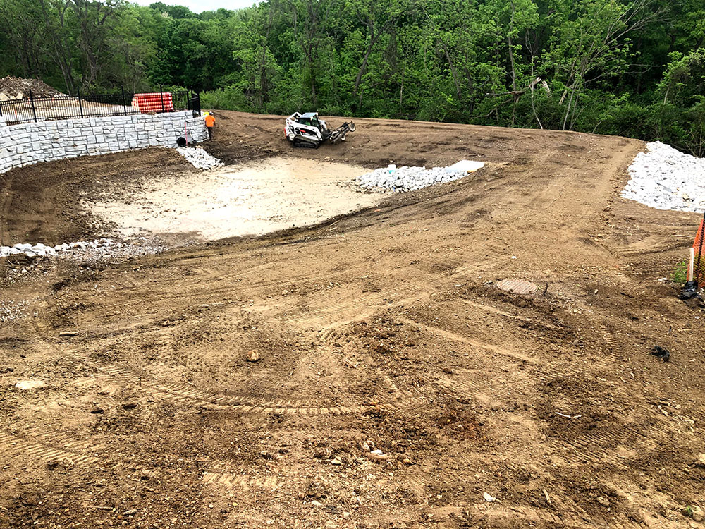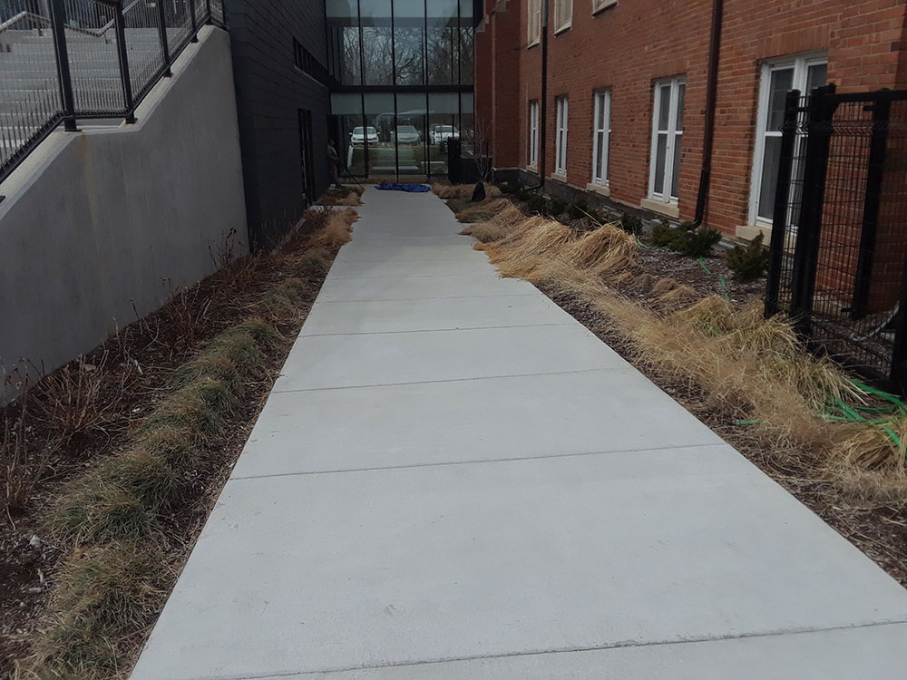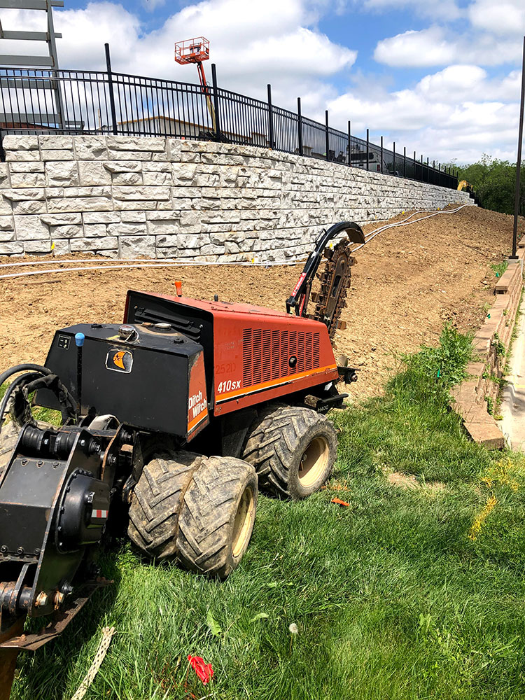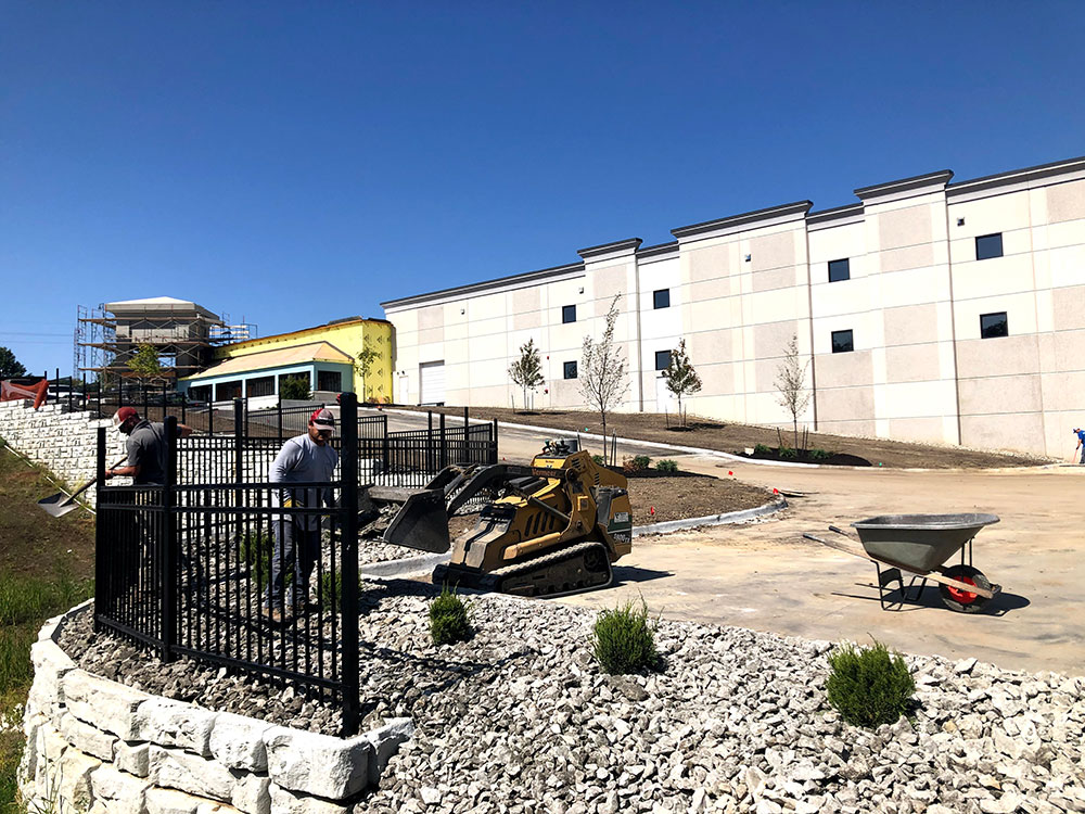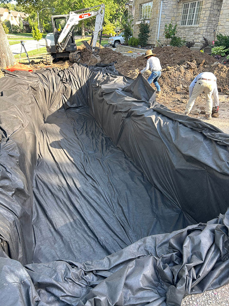 Commercial warehouse swale installed to relieve water pooling in backside of building | Kansas City, KS
