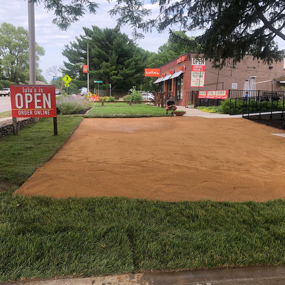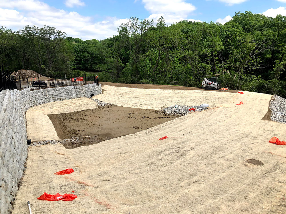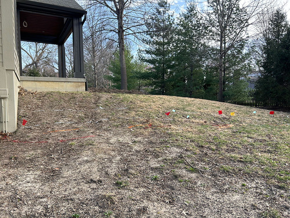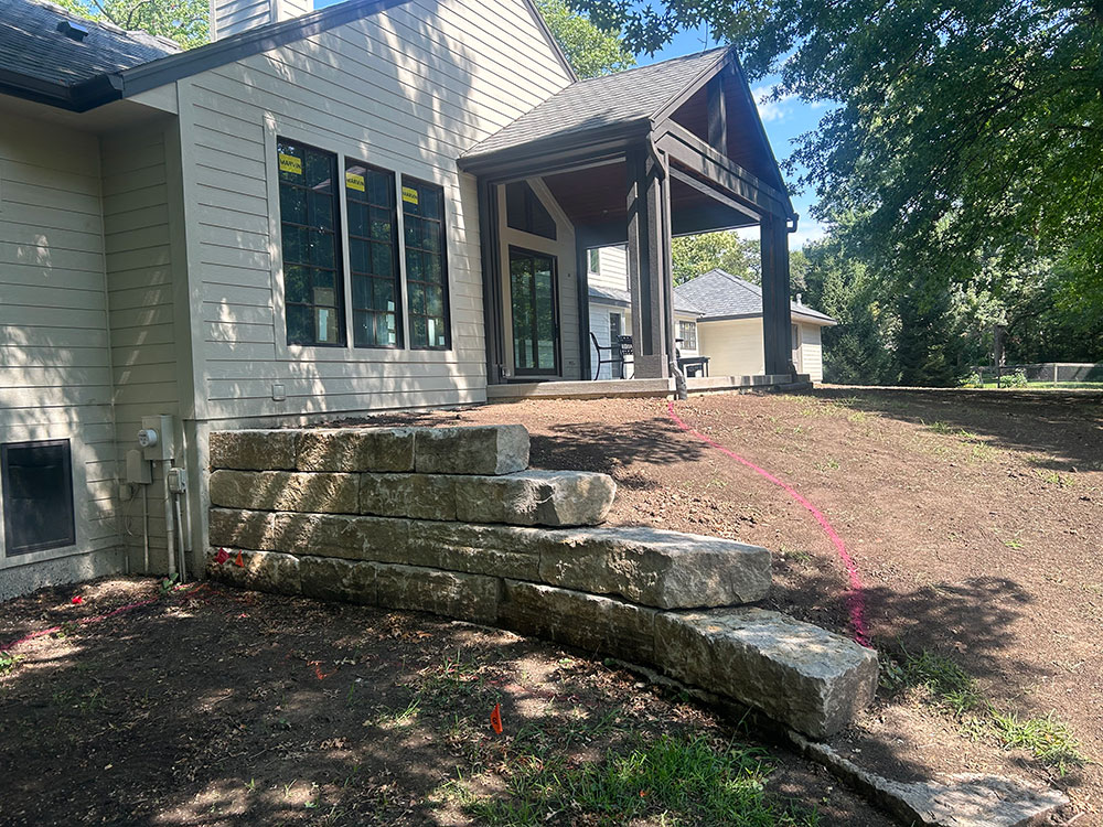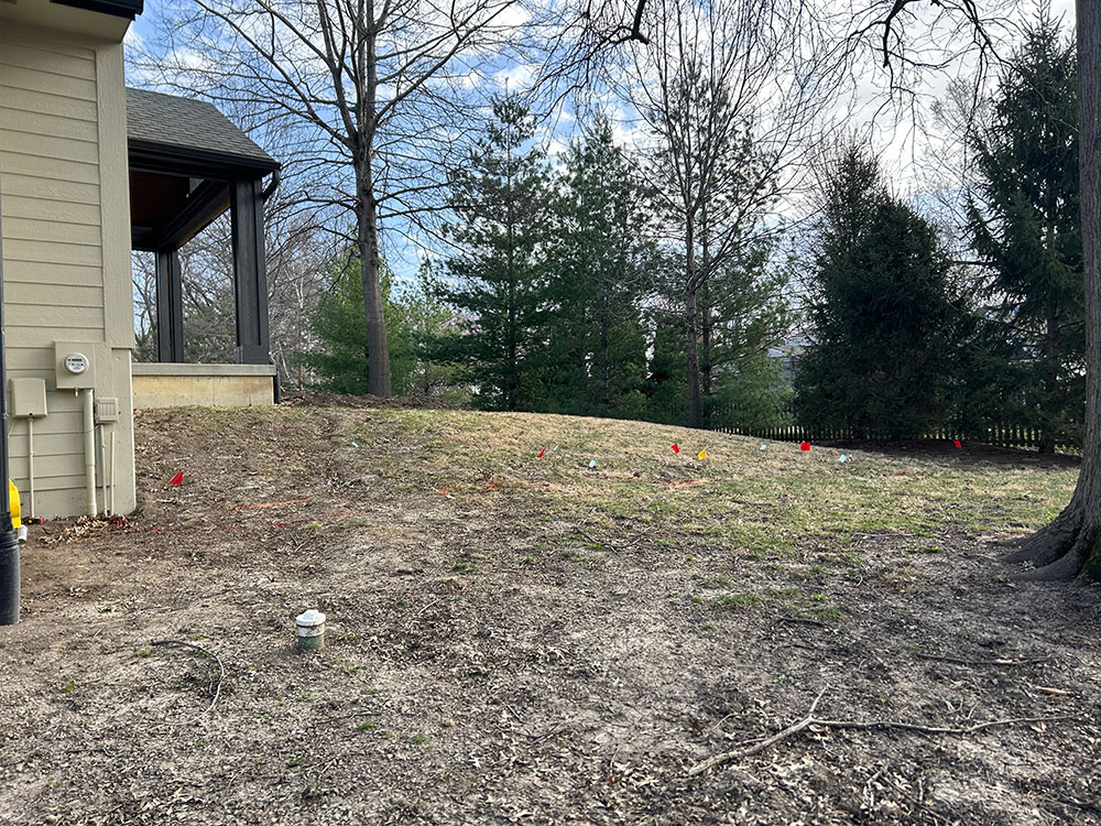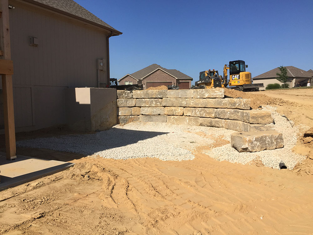 Commercial warehouse swale installed to relieve water pooling in backside of building | Kansas City, KS