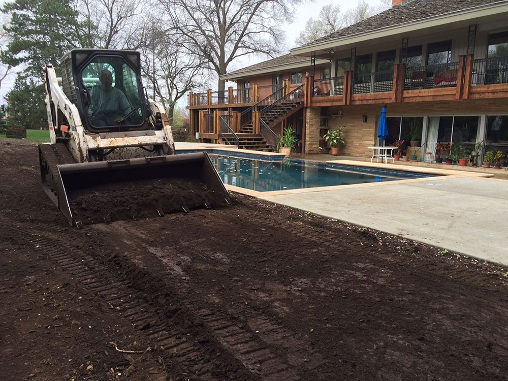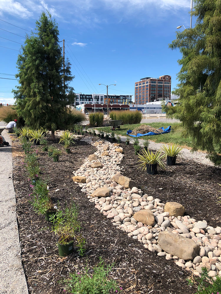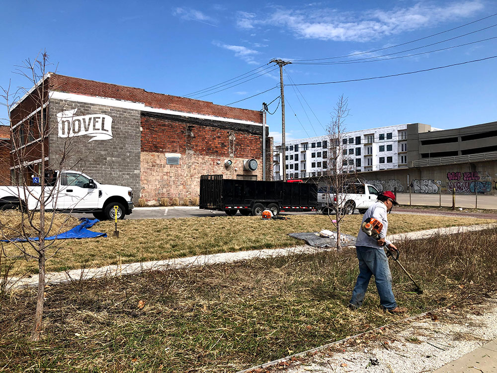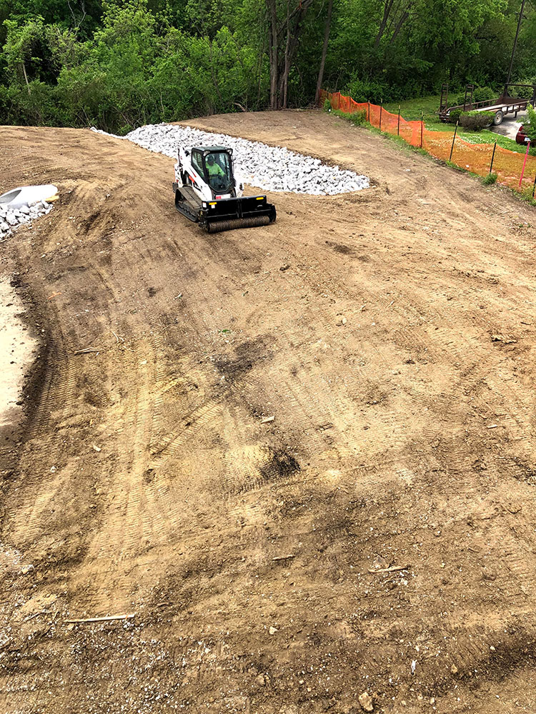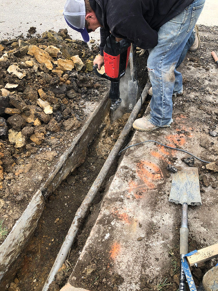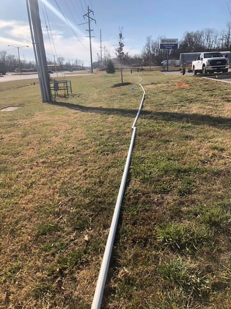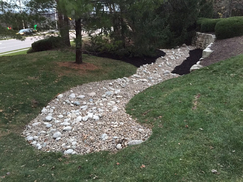 Commercial warehouse swale installed to relieve water pooling in backside of building | Kansas City, KS